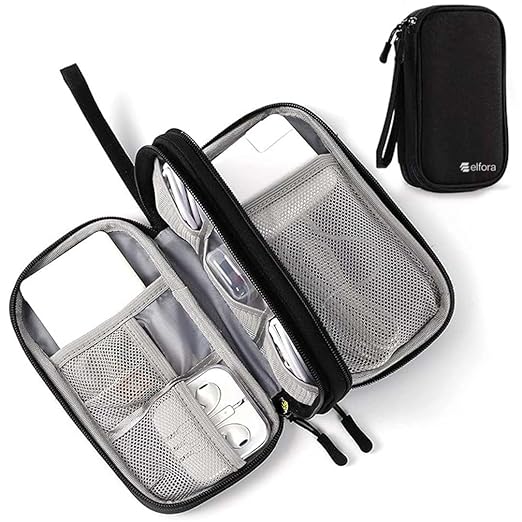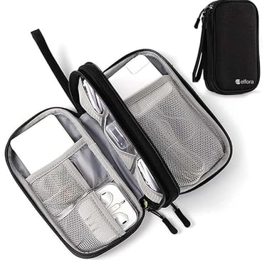 Features two organized compartments with mesh pockets and elastic straps to securely store cables, USB drives and other essential accessories.